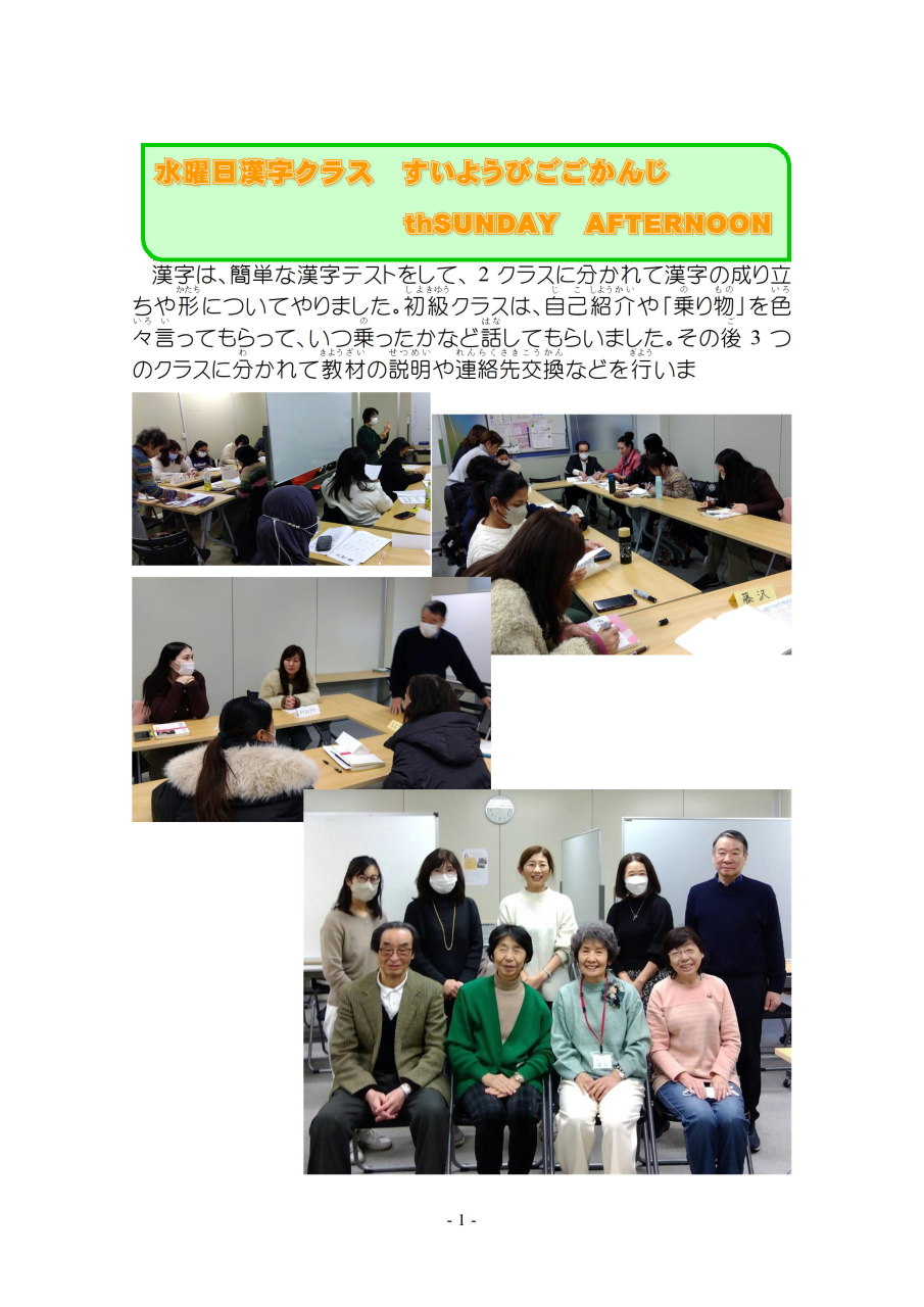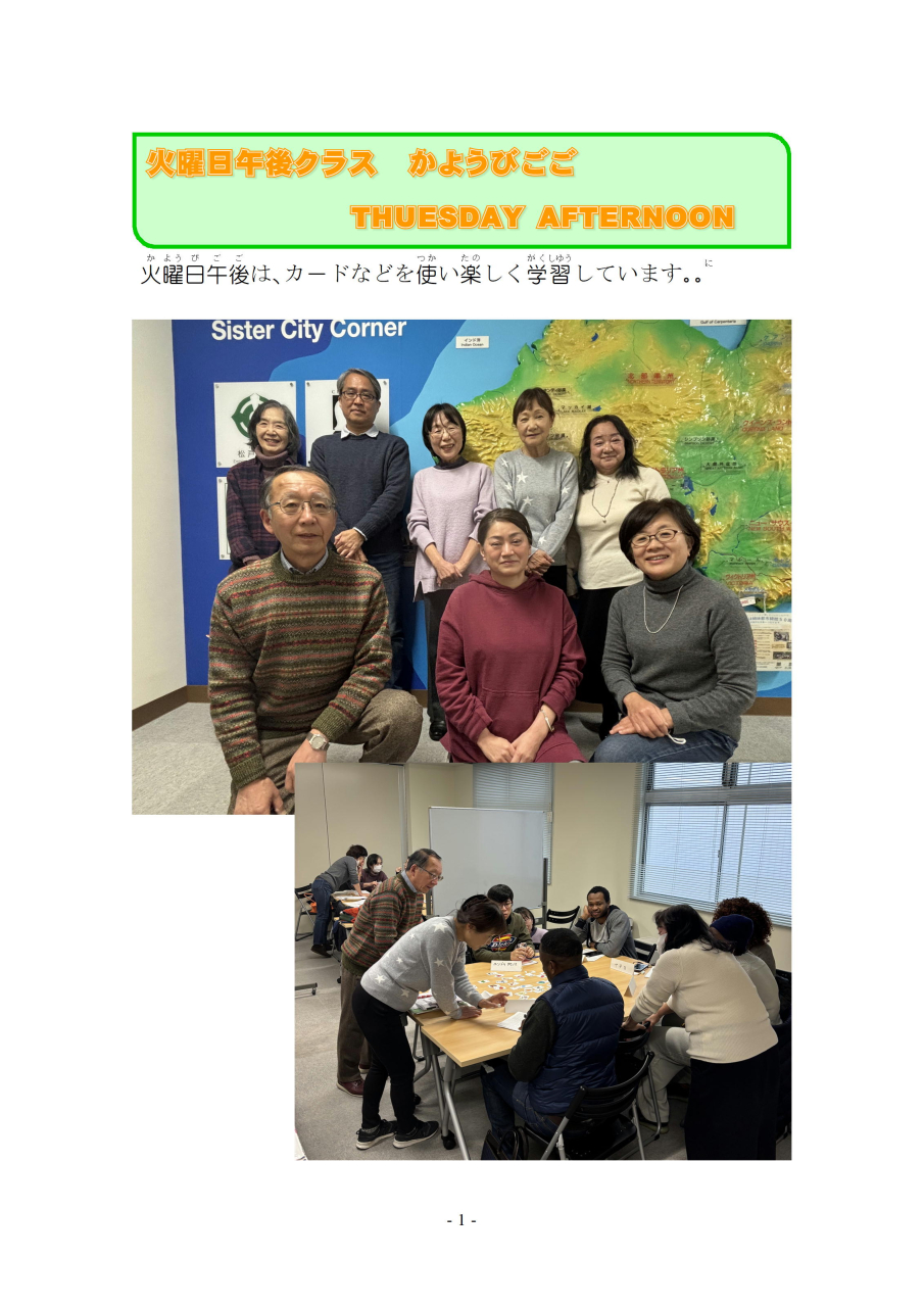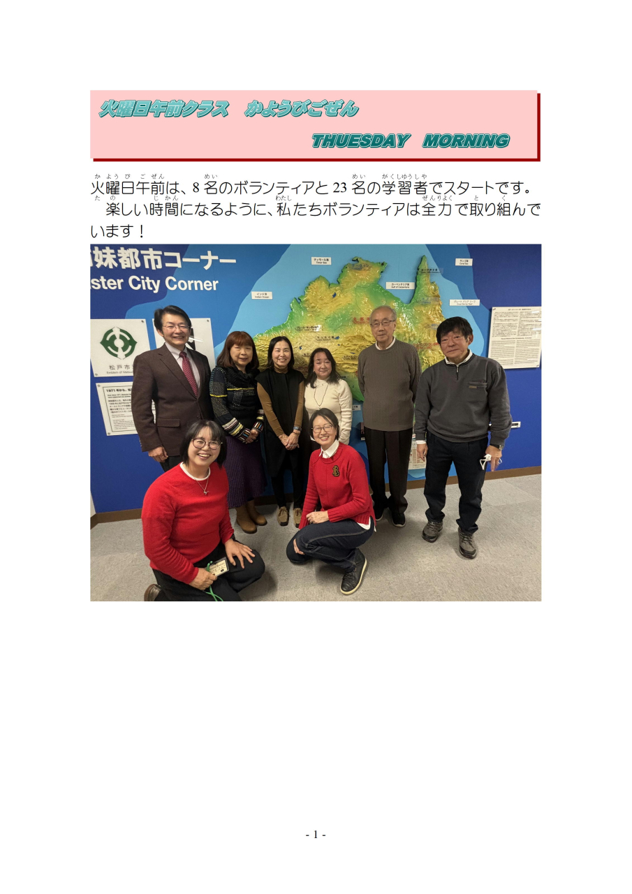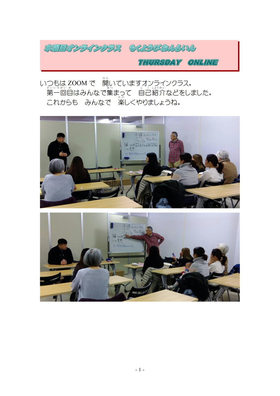 明(あ)けましておめでとうございます。今年(ことし)もよろしくお願(ねが)いします。三学期(さんがっき)が始(はじ)まりました。ボランティアの紹介(しょうかい)をかねて 一回目(いっかいめ)の授業(じゅぎょう)を ご報告(ほうこく)します。
